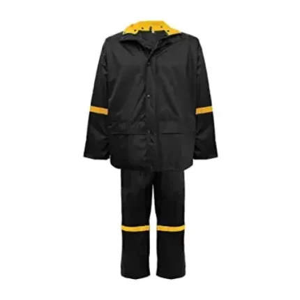 Traje de lluvia 3 en 1 duradero, resistente al viento e impermeable. Incluye pantalones, chaqueta y capucha desmontable. Especificaciones del producto: fabricado con 0. 18 mm 190T nylon/PVC. Cuenta con ribete amarillo, interior de malla (chaqueta y capucha), 2 grandes bolsillos delanteros en la chaqueta, costuras totalmente selladas.   Descargue ficha técnica