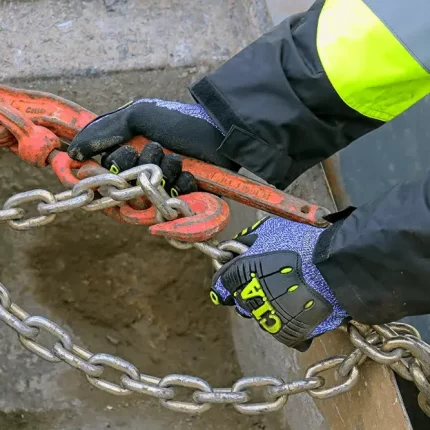 Fibra HDPE (polietileno de alta densidad) gris cal. 13. Resistente al corte nivel 5, Recubrimiento de nitrilo laminado negro en palma y dedos, sin costuras. Extraordinaria resistencia al corte y a la abrasión. Excelente agarre en condiciones secas. Comodidad al manipular materiales y herramientas cortantes con precisión. Ergonómico y Fresco. Presenta gran resistencia para manejo de materiales pesados con alto riesgo de corte. Descargue ficha técnica
